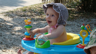 While you wait, make faces at a cute baby until she dissolves in giggles and pulls the top tray off of her high chair.